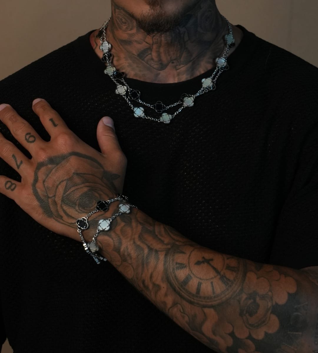 שרשרת תלתן מנס – שחור כסף